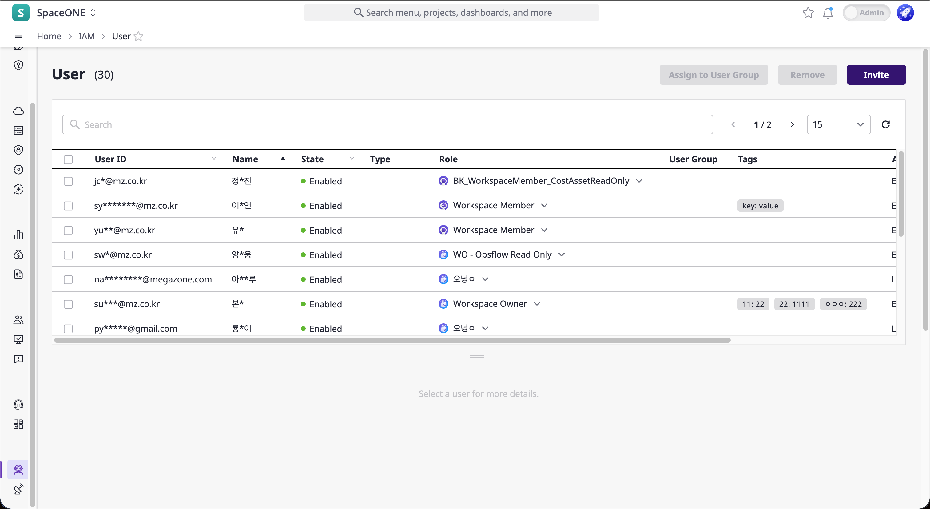 | Workspace Group > Group User | User information in the group user table |